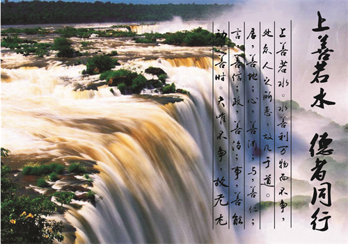“上善若水。水善利萬(wàn)物而不爭(zhēng),處眾人之所惡,故幾于道。居,善地;心,善淵;與,善仁;言,善信;政,善治;事,善能;動(dòng),善時(shí)。” ——《道德經(jīng)》第八章