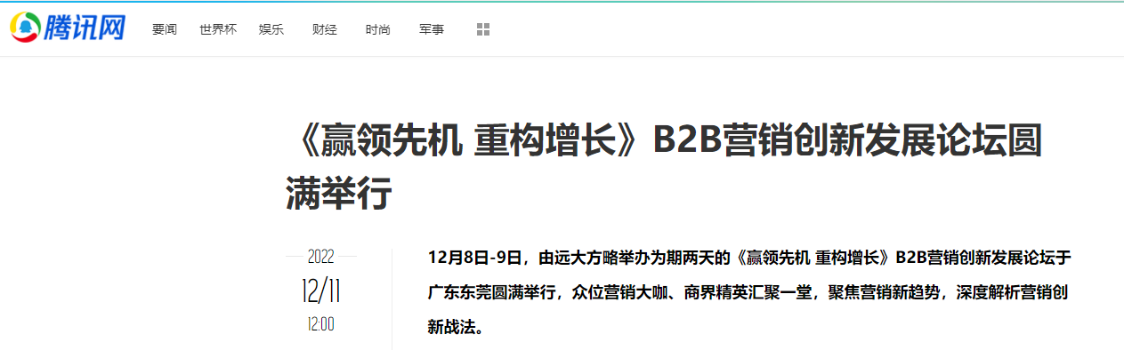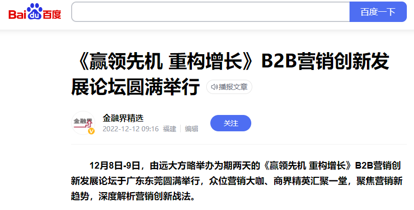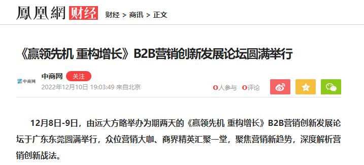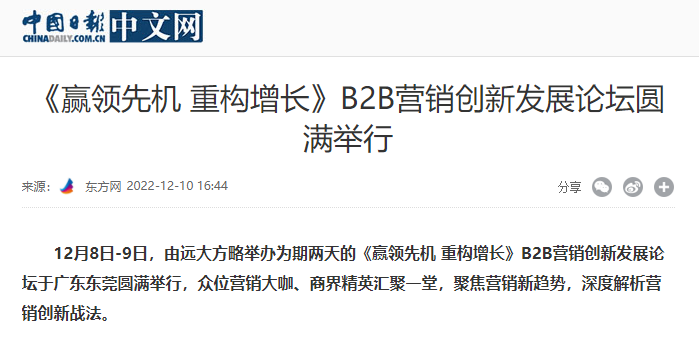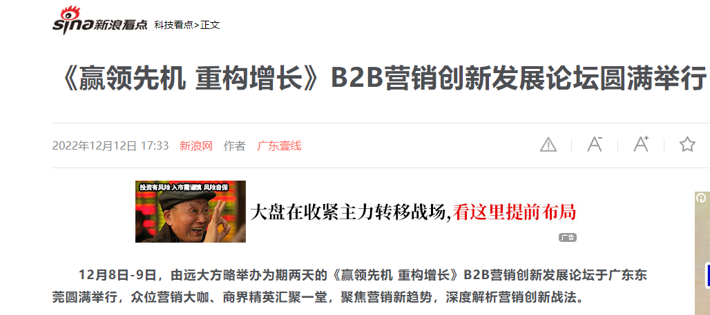 12月8日-9日,由遠大方略舉辦為期兩天的《贏領(lǐng)先機 重構(gòu)增長》B2B營銷創(chuàng)新發(fā)展論壇于廣東東莞圓滿舉行,眾位營銷大咖、商界精英匯聚一堂,聚焦?fàn)I銷新趨勢,深度解析營銷創(chuàng)新戰(zhàn)法。