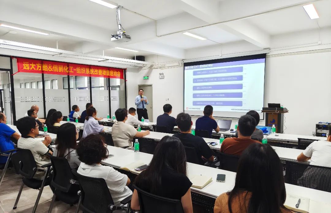啟動會上,譚總首先向遠大方略項目組表示歡迎和感謝,并深入闡述了此次變革的目的和意義。信鵬化工作為一家深耕化工行業近十年的企業,憑借對高質量的堅守與技術優勢等,近幾年均實現了快速擴張。但隨著團隊規模擴大與業務復雜度提高,在組織管理方面也出現了一些問題。譚總表示,信鵬化工需要從“人治”轉向”系統治理”,從粗放式管理轉向規范化經營;強調所有管理者和干部,都要積極配合顧問老師的工作,擁抱變化,在實踐中學習,通過良性競爭促進自我能力的提升;期望所有參與變革的員工能夠在此次項目中能夠拓寬視野、提升專業技能、建立系統性思維。